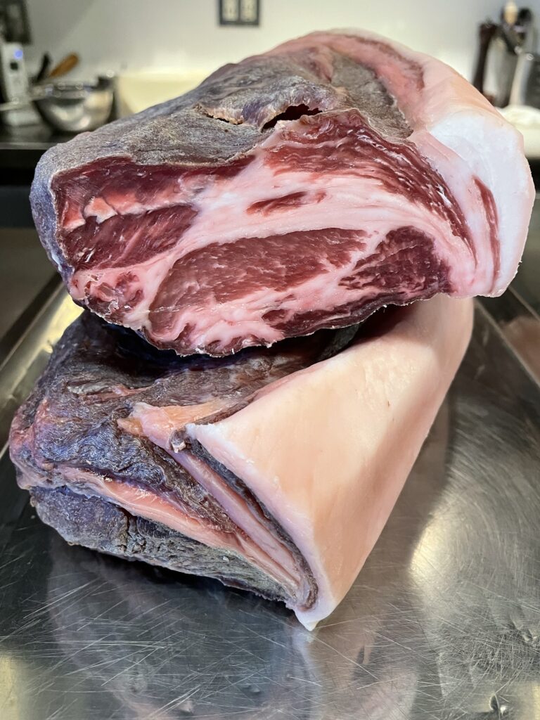 熟成により、赤身肉の風味が変わると同時に、脂肪の質も大きく変化します。コクのある味わいが引き出されることで、赤身と脂肪とが見事なバランスで一体となります。健全な飼育を経た石見ポークは、非常に肉厚で、熟成により噛むほどに旨味が広がります。